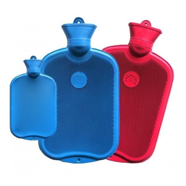 Saco de água quente forrado, fabricado em borracha natural, com capacidade de 2L.