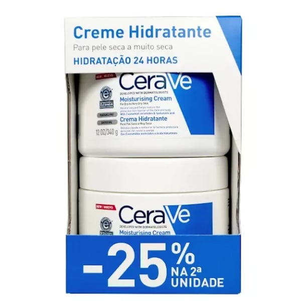 Desenvolvido com dermatologistas, 3 ceramidas essenciais e a exclusiva tecnologia MVE de hidratação encapsulada com libertação controlada e contínua de ingredientes ativos, o Creme Hidratante, para pele seca a muito seca, com uma textura rica e não oleosa, é formulado com Ácido hialurónico, Glicerina, Fitoesfingosina e Colesterol, para hidratar e nutrir a pele, enquanto que restaura a barreira protetora do rosto e corpo. Imediatamente após a 1ª aplicação em pele seca, -60% de prurido e -55% de ardor. Indicado para toda a família: bebés a partir dos 2 meses, crianças e adultos. Sem perfume, não comedogénico e hipoalergénico. CeraVe é a marca número 1 recomendada por dermatologistas nos EUA.