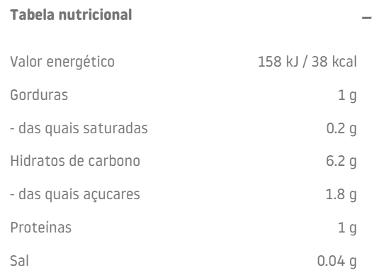 Tem 230g e, como todos os nossos boiões, é feito com matérias-primas de qualidade provenientes de agricultores selecionados, mantendo o sabor e a textura originais.