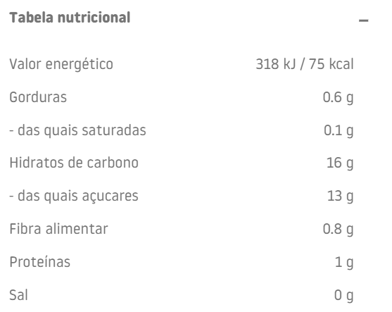 Puré de banana* (45%), puré de pera* (32%), puré de cereja* (16%), puré de açaí* (5%) e farinha de amaranto* (2%).
